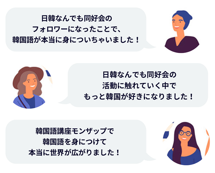 ネイティブ韓国人サポーターとの実践練習機会をはじめ、“韓国留学”に近い環境を作るべく“コミュニティ要素”を加えています!